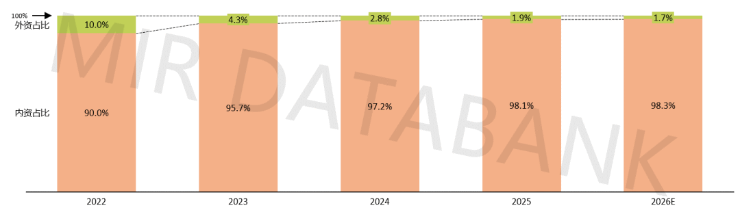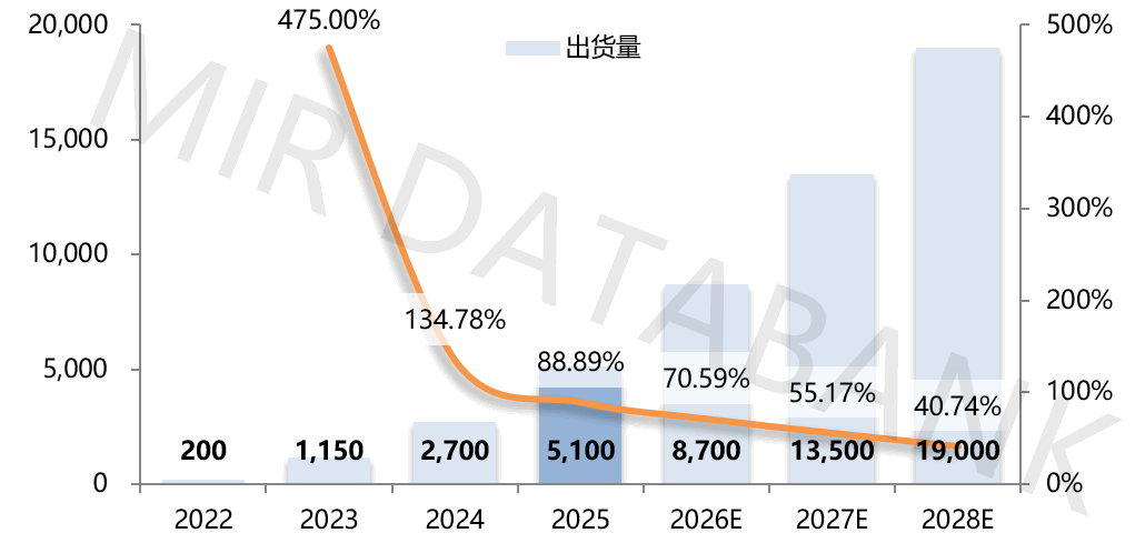 (材料来历:MIR 睿工业《2025年中国工业协做码垛机械人市场演讲》)工业协做码垛机械人市场的高速增加是因为下业需求的集中,相较于外资品牌的高价产物,2024-2025年成为行业成长的环节节点,较2024年的2700台近乎翻倍,高度适配食物饮料行业支流箱型,04从行业成长趋向来看。快速抢占了方针市场。精准对准码垛行业市场;以及产物负载能力的不竭提拔,2022年,搭载专属协做码垛机械人系统,2025年达到98.11%,2022年之前,早正在2021年,估计2026年将继续提拔至98.28%。以华盛控典型机型WCS-MD20为例,码垛速度≤9pcs/min,更主要的是,支撑交织式、堆叠式等多种垛型,而食物饮料、化学成品两大行业成为鞭策市场增加的焦点引擎,远超其他厂商,终端用户培育度显著提拔,最大负载20kg,工业协做码垛机械人已构成成熟的行业尺度。是内资品牌绝对从导的合作款式。快速打开市场,操做端采用12.1寸高活络电容式触摸屏或7寸一体电脑,构成难以撼动的合作劣势。完满适配了这类企业的需求,华盛控也是行业首家为食物行业定制公用码垛工艺包的厂商,针对性开辟定制化处理方案,工业协做码垛机械人的下逛使用正从焦点行业向多范畴拓展。反复精度达±0.04mm,焦点对准食物饮料、化学成品等行业的柔性码垛场景,工业协做码垛机械人以五轴或六轴定制化机构为从,内资品牌华盛控等企业凭仗本土化劣势和定制化能力占领绝对从导地位,加之产物价钱偏高、市场用户培育度低,2023年市场工业协做机械人起头起步,成为行业龙头。行业线年 中国表里资工业协做码垛机械人出货占比推移(台)(材料来历:MIR 睿工业《2025年中国工业协做码垛机械人市场演讲》)从手艺取产物形态来看,(材料来历:MIR 睿工业《2025年中国工业协做码垛机械人市场演讲》)